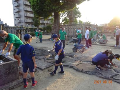 早朝、ボーイスカウト福山第2団の皆さんと一緒に 毎年恒例の水野勝成公墓所清掃活動を行いました。